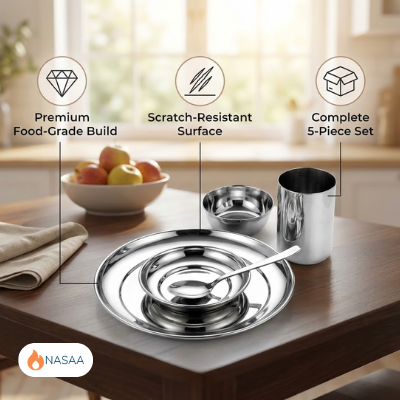 Built for the rigors of a busy kitchen, the Luxus-5 set is highly resistant to impact and corrosion. Its stackable design ensures that even a complete 5-piece set takes up minimal space in your kitchen cabinets. It is the ultimate wingman for your morning paratha and a reliable staple for years to come.