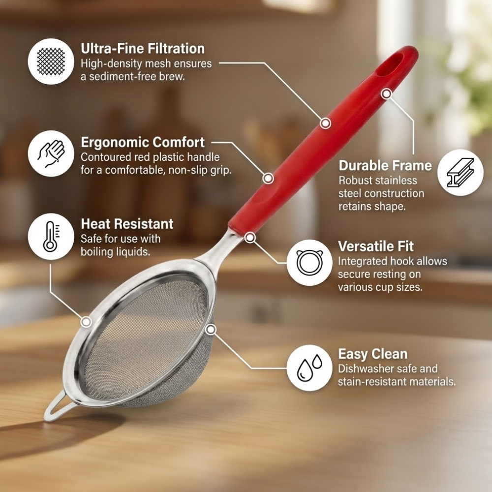 Whether used at home, in tea shops, cafés, or restaurants, the Plastic Handle Tea Strainer offers reliability, convenience, and efficiency for everyday beverage preparation.