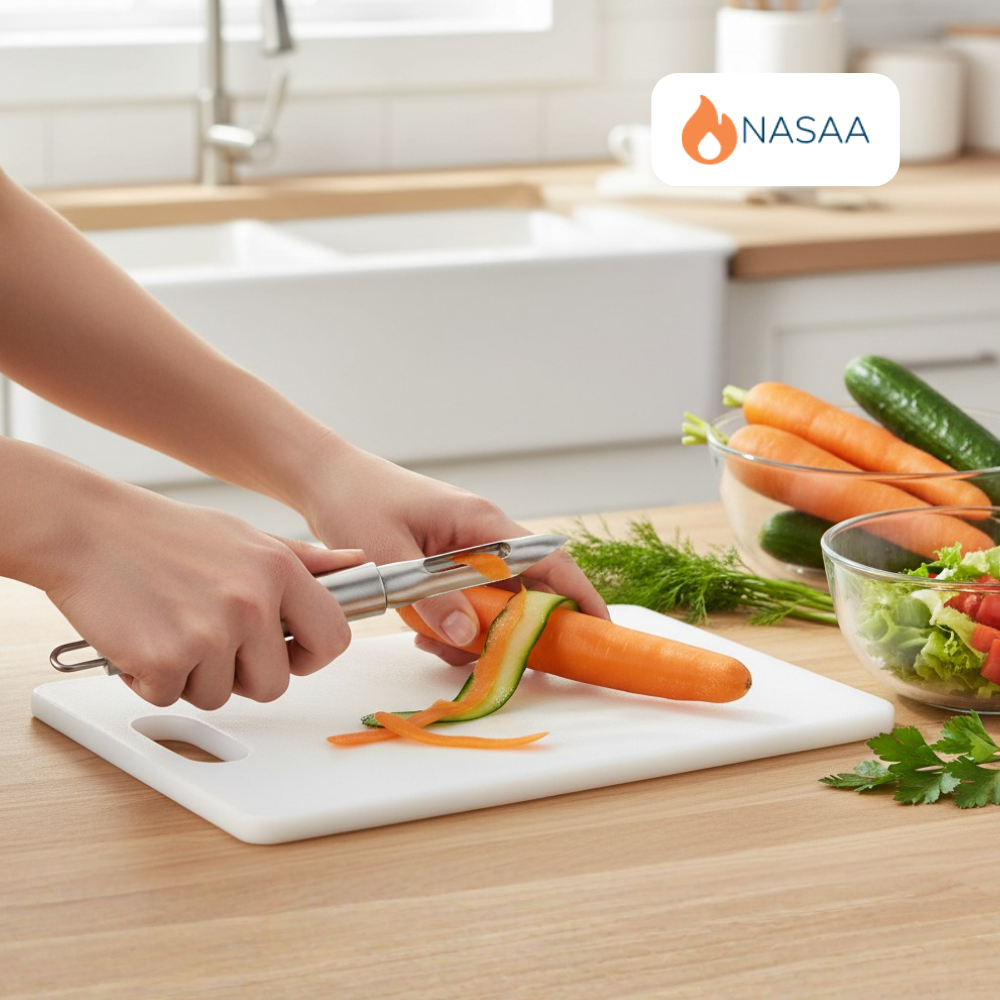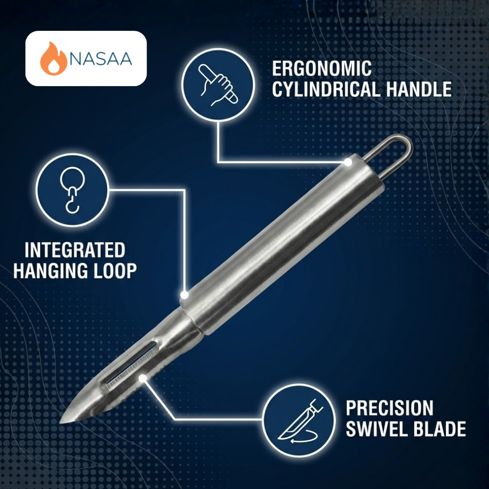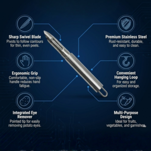 The integrated peeling slot ensures smooth and controlled peeling, making it suitable for potatoes, carrots, apples, cucumbers, and more. The stainless steel handle provides a firm, balanced grip, offering better control and reducing hand fatigue during extended use. Its sleek and hygienic design makes it easy to clean and ideal for both home kitchens and commercial environments.