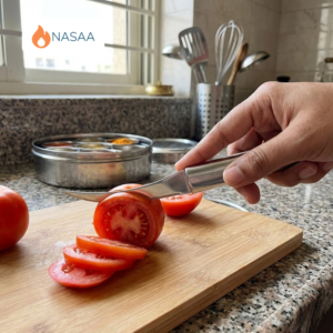 The Tomato Knife S.S is an essential kitchen tool created for precision slicing of soft foods. Made from premium-grade stainless steel, the blade is durable, rust-resistant, and designed to maintain sharpness over long-term use. Its finely serrated edge grips the surface of tomatoes and similar ingredients, allowing smooth slicing without tearing or squashing.